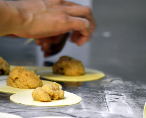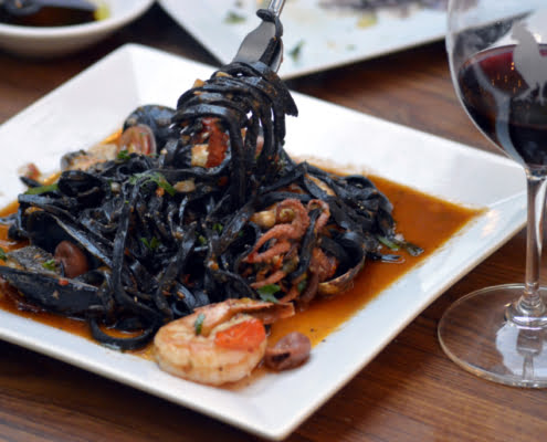 Main dishes – The Shrimp and Lobster Ravioli being made & and served (a must-try), Lasagna Con Ragu E Prosciutto Cotto and Squid Ink Linguini Frutti di Mare